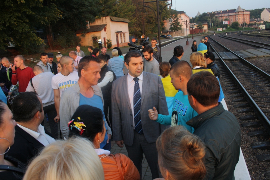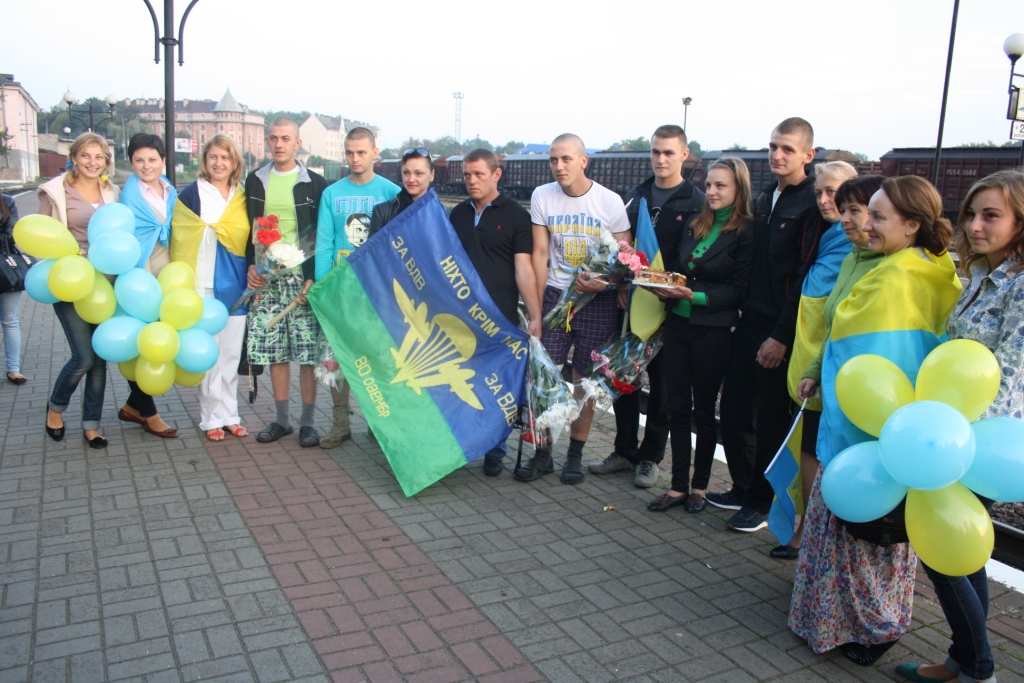 Бійців з 80-ї окремої аеромобільної бригади на залізничному вокзалі зустрічали родичі, активісти, журналісти, голова Чернівецької облдержадміністрації Роман Ванзуряк.