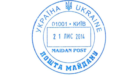 Сьогодні Укрпошта ввела в дію спеціальний поштовий штемпель з пересувною датою «Пошта Майдану. Київ, 01001».