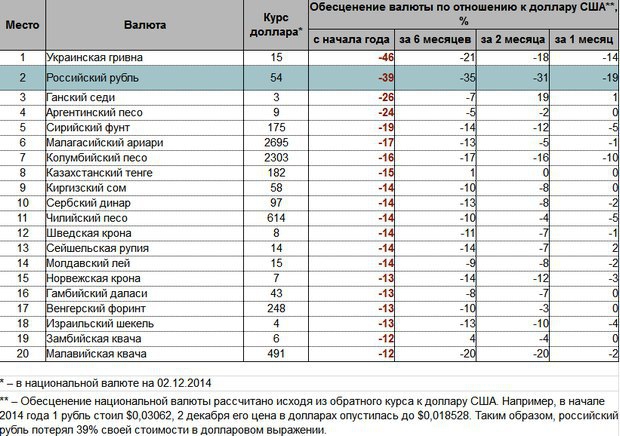 Таблиця, яка опублікована FINANCE.UA станом на 2 грудня. Рубль – другий у сумному змаганні , третя – валюта африканської країни Гани – седі