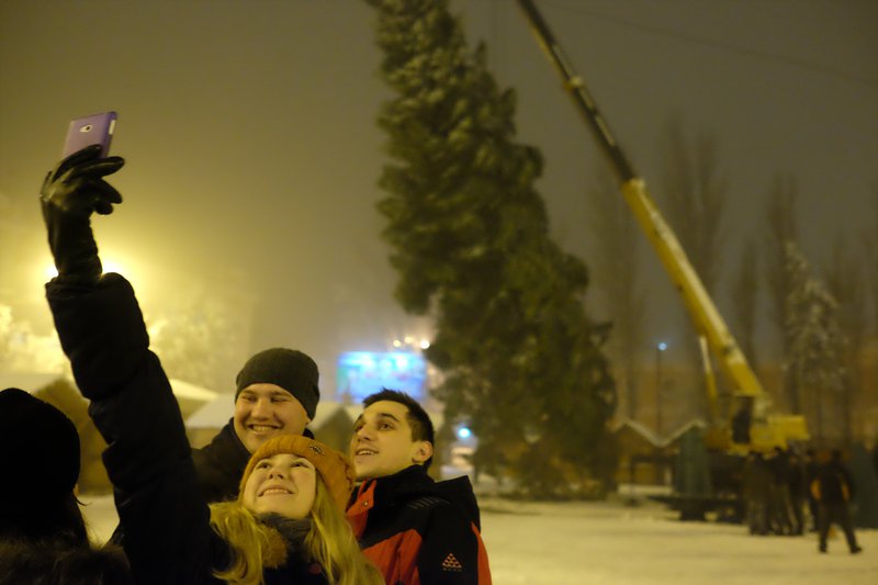Головна ялинка міста вже дісталася свого міста на Соборній площі, її встановили вчора ввечері, про це повідомляє прес-служба міської ради. Випадкові перехожі радо робили селфі на фоні 20-метрової зеленої красуні.