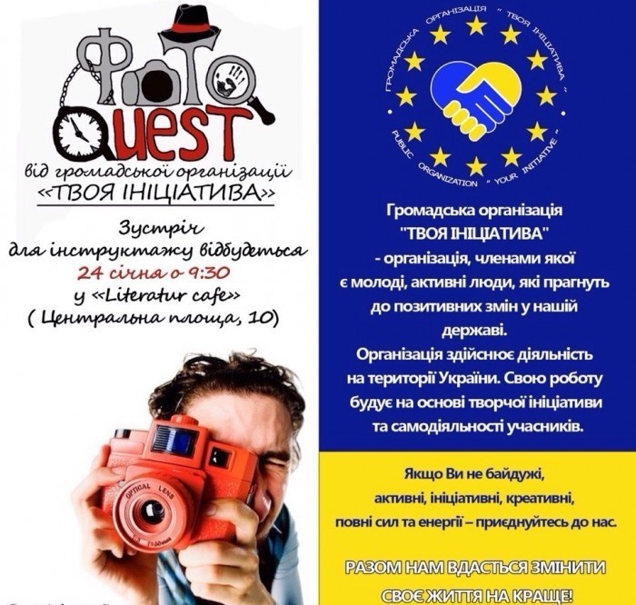 Перший у Чернівцях фотоквест запланований на 24 січня. Учасники отримають «фото завдання» і у визначений час здати роботи у друкованому вигляді (без обробки), пише fakty.cv.ua