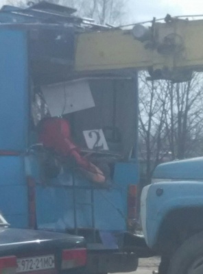 Сьогодні о пів на другу дня на розі вулиць Руської та О.Пчілки водій приватного пересувного крану не впорався з керуванням і стрілою в’їхав у задню частину тролейбусу «Вольво», – повідомляє vidido.ua.