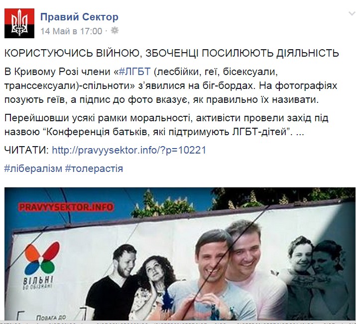 Поборолися із Андруховичем. Перейшли до геїв. Усе, як книжка пише. По новий напрямок боротьби повідомляє офіційна сторінка Фейсбук “Правого сектору”