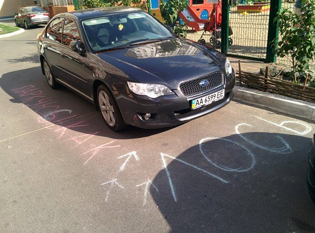 Дітки з радістю намалювали крейдою навколо машини “героя” напис, повністю відповідну відбувається. “Паркуюся як лось”, – гідний опис водія Subaru.