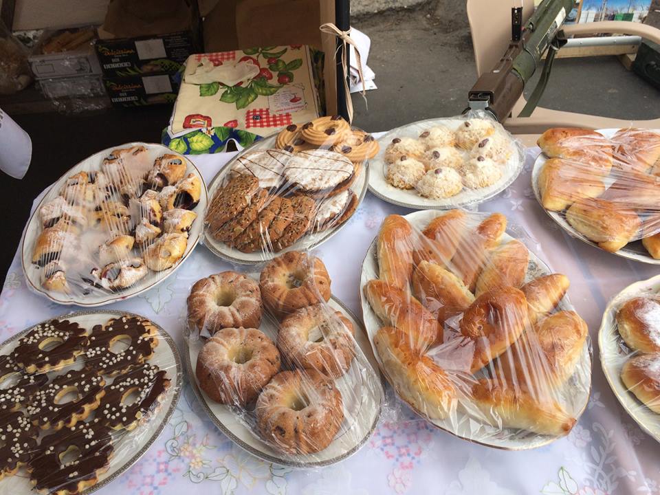 «Волонтери за Батьківщину» підготувалися до ярмарку серйозно: напередодні напекли безліч пиріжків з найрізноманітнішою начинкою (сир з кропом, абрикоси, чорниця, цукати), наготували й іншої випічки: ватрушок, бісквіту, «вишиванку» з сиром, «пальчики» з сиром і з повидлом, трубочки з листкового тіста, начинку на натуральному меду, начинені «персики», печиво з орнаментами, що найбільше подобається дітям…», – йдеться у повідомленні.