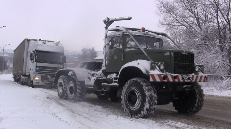 У с. Магала Новоселицького району працівники Управління ДСНС відбуксирували та допомогли продовжити подальший рух 12 вантажівкам, яким негода завадила самостійно зрушити з місця.