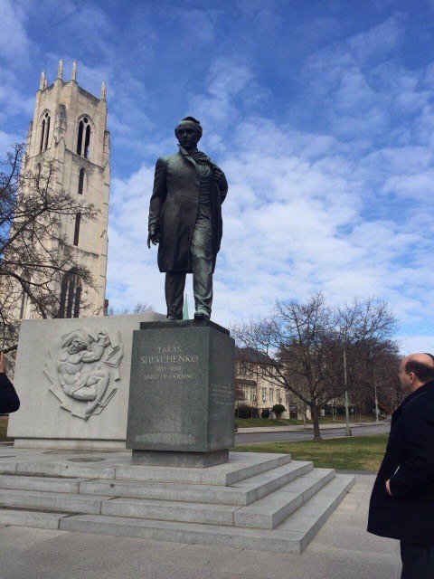 «Семиметровий бронзовий молодий Тарас на гранітному постаменті – робота канадського скульптора українського походження Лео Мола (уродженця сусіднього з нами Поділля Леоніда Молодожанина) та архітектора Радослава Жука, – прокоментував це фото Іван Мунтян. – Пам’ятник урочисто відкрив 27 червня 1964-го року екс-президент США Дуайт Ейзенхауер. Дозвіл на зведення статуї Тараса Шевченка надали у своїй резолюції Сенат Сполучених Штатів та Палата представників США», – написав Іван Мунтян.