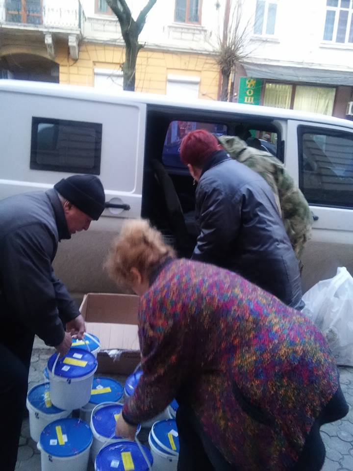 Лідія Гаїна подякувала доброчинцям Любі Кукурудзяк та Василеві Шкробанцю, які передали футболки, гумові чоботи для бійців, передали сухе молоко і 20 кг масла, і постійним помічникам –  пані Наталі Харіні, родині Базна з Кіцманщини, сестрам-підприємицям Марії та Ользі, що торгують тюлями на Калинівському ринку.