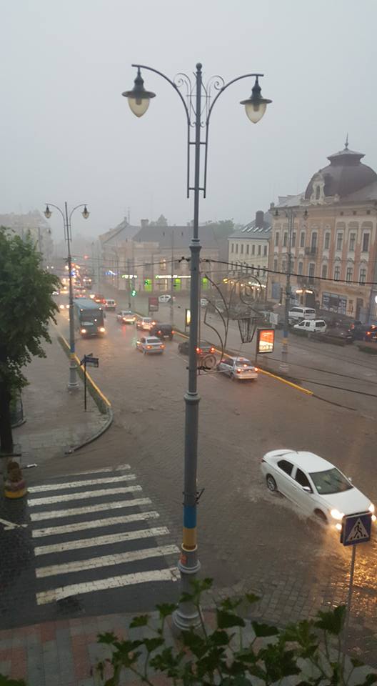 Тим часом багато чернівецьких вулиць затопило, нерозчищені зливові мережі не справлялись з потоком води. Чернівчани через затоплений вокзал не могли дістатись до потягу на Київ, і змушені були ледь не вплав добиратись до своїх вагонів.