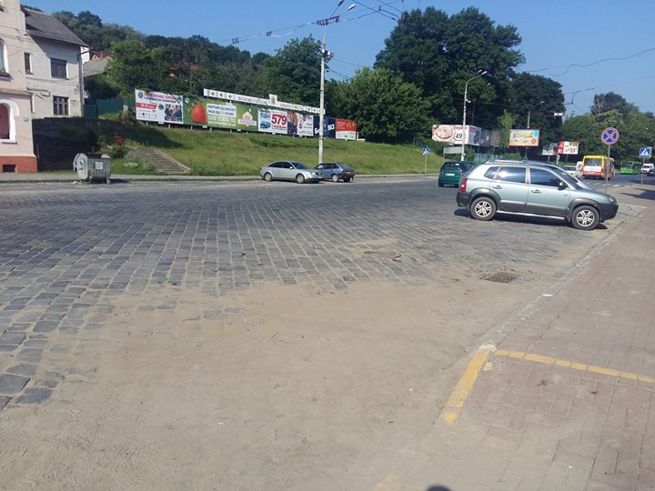 Про купи піску біля вокзалу розповів у фейсбук-спільноті «ГО Старе місто» активіст Андрій Жилкін