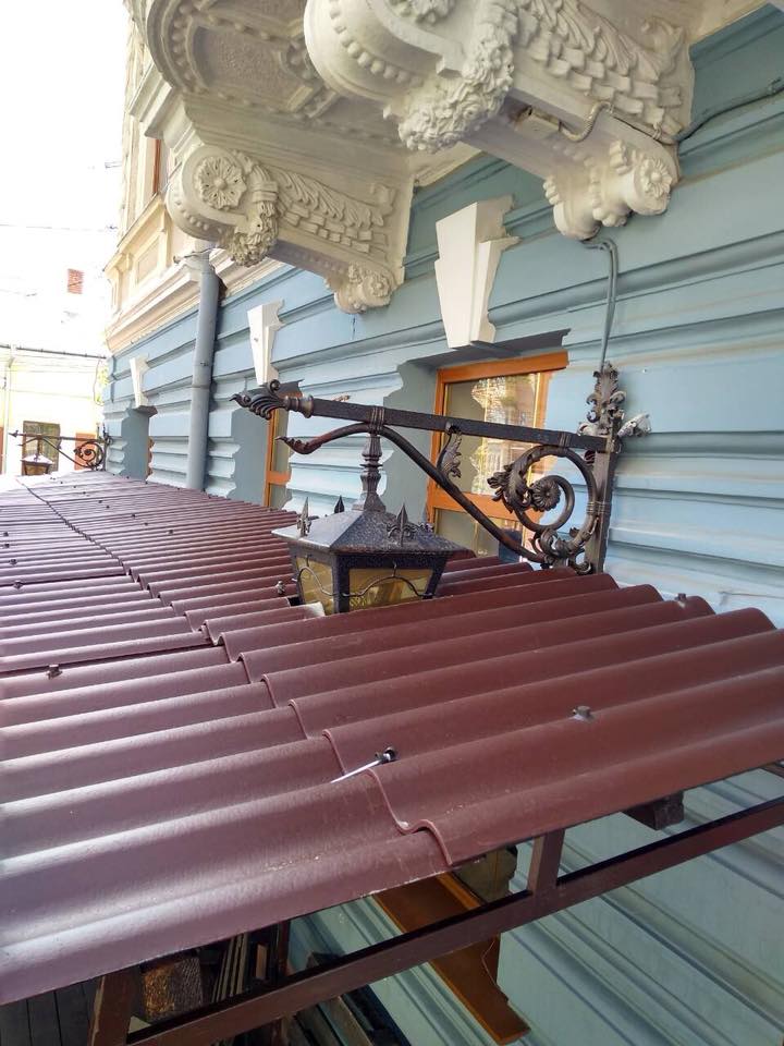 На Кобилянській власник кафе вбудував кований ліхтар у навіс літнього майданчику (фото)