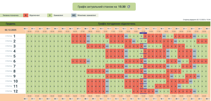 До 12 годин без світла: “Чернівціобленерго” оновило графік відключень на 2 грудня