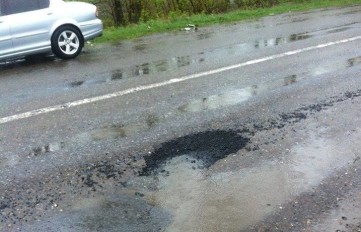 На виїзді з Чернівців невідома організація засипає асфальт у калюжі