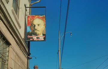 Сьогодні зранку на вулиці Гагаріна, неподалік осередку КПУ, невідомі повісили банер з портретом Леніна. Мабуть таким чином хтось вирішив відзначити день народження лідера комуністів....