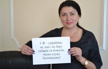Перший заступник голови Чернівецької обласної ради ради Інга Маковецька започаткувала у соцмережах флеш-моб “#Я-українець, не даю і не беру хабарів та відкатів, чесно...