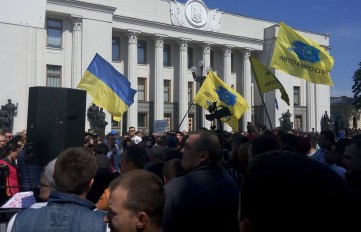 Під Верховною Радою активісти громадської організації «Авто євро сила» виступають проти законопроекту лідера парламентської фракції “Народний фронт” Максима Бурбака про введення щорічної плати за...