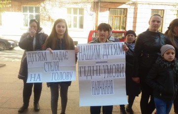 Батьки не відпустили дітей до аварійної школи в Йорданештах і разом з ними прийшли пікетувати ОДА (відео)