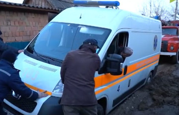 Машину із дорожньої пастки витягали рятувальники, а бригада медиків тим часом добиралася до хворого пішки. Місцеві мешканці зазначають, що дорогу не ремонтували вже багато...