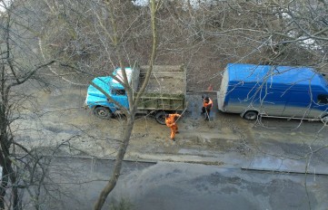 Чернівецькі комунальники спершу накидали у калюжу щебінь, а потім забрали його звідти